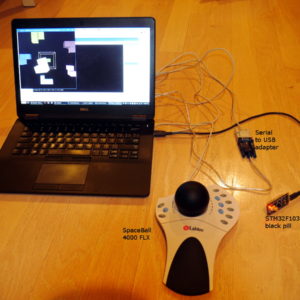arpruss Mon Aug 27, 2018 3:38 am I acquired an old serial SpaceBall 4000 3d-mouse on ebay, with the hope of using a max3232 to connect it to a black/blue pill, which ..